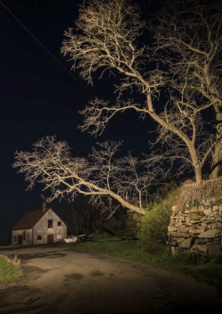 Gloucester is a city on the north shore of Massachusetts that has been an important shipping and fishing center for over 300 years. It is also a place with lots of inlets and coves, and commercial areas where the old meets the new. I like to go to areas that make it less recognizable as Gloucester, becoming instead an old place showing the wear and tear that happens when the manmade meets the sea. I like to add another element, though. I go at night. If it’s a clear night or, especially, on a foggy night, it becomes a spooky place, untethered in time and place.